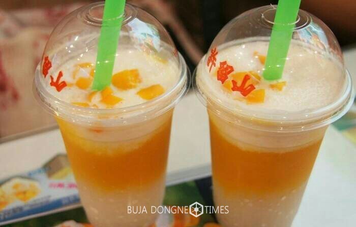 '허유산'의 주 메뉴는 망고주스,거북등푸딩,허브차, 코코넛 아이스크림이다.