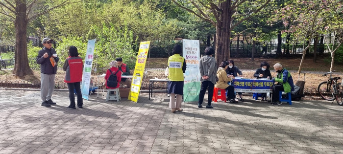 이번 강선공원에서 추진한 상담소는 일산서구청, 주엽2동 행정복지센터와 일산서구보건소 치매안심센터 등 세 기관이 협업하여 원스톱 복지상담, 복지사각지대 신고 채널(희나리) 홍보 및 치매검사를 동시에 받을 수 있도록 진행되었다.