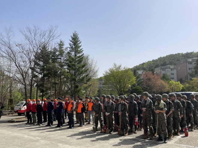 주요 훈련내용으로는 ▲유관기관 합동 산불진화차량·기계화 산불진화시스템을 활용한 단계별 진화훈련 ▲산불 발생 시 주변 통제 등을 훈련했다.