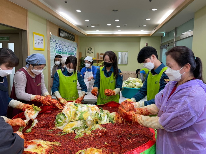 김장행사는 두레생협(고양파주)에서 재료를 지원해 두레생협 우미란 이사장과 조합원, 배움누리 센터 직원, 일산 동부경찰서 여성청소년계 경찰 등 총 18명의 유관기관이 함께했다. 이날 마련된 총 300kg의 김치는 배움누리 청소년 가정과 주변 저소득 가정 30가구에 전달됐다.