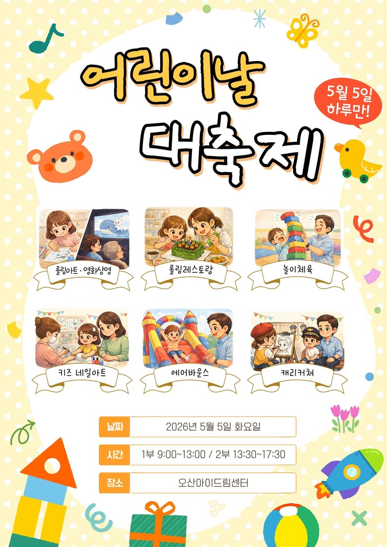 오산시는 이번 행사를 통해 어린이들에게는 즐거운 추억을 선사하고, 보호자에게는 자녀와 함께 소중한 시간을 보낼 수 있는 가족 친화형 체험의 장을 제공할 계획이다.