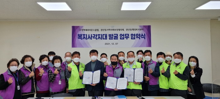 [부자동네타임즈 김인수기자] 고양시 관산동 지역사회보장협의체(민간위원장 김성두)가 지난 7일 고양벽제라이온스클럽(회장 이재은)과 복지사각지대 발굴 연계협력을 위한 업무협약을 체결했다.