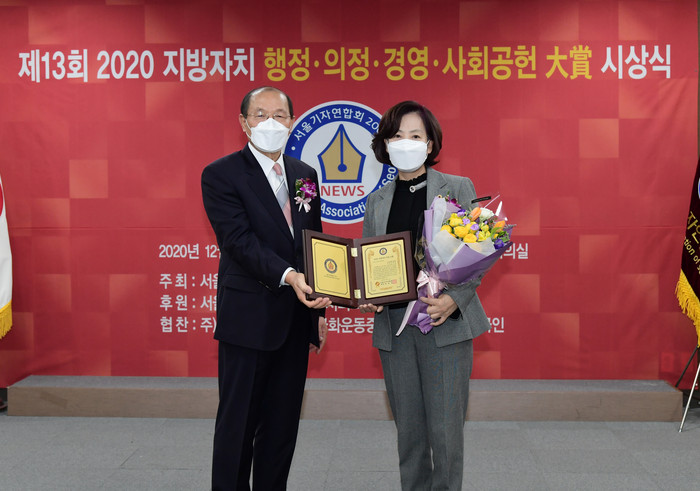 ‘2020 지방자치 의정대상’은 서울기자연합회 주관으로 행정·의정·경영·사회공헌 각 분야별로 서울시민의 복지증진과 노블레스 오블리제를 실천하여 사회 공헌에 기여한 인물과 기관을 발굴하여 심의를 통해 시상해왔다.