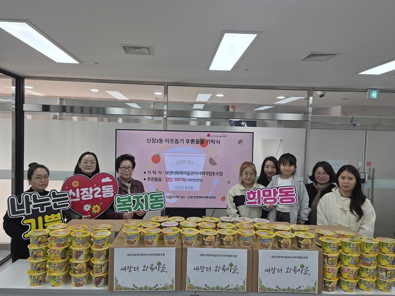 오산시 신장2동 행정복지센터(동장 이은영)는 지난 13일 새장터화목마을협동조합(대표이사 유정복)으로부터 관내 저소득 계층을 위한 컵밥 300개(150만 원 상당)를 기탁받았다고 밝혔다.