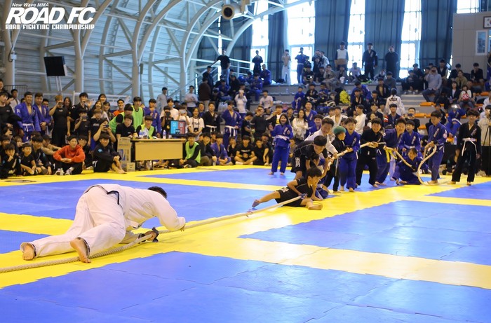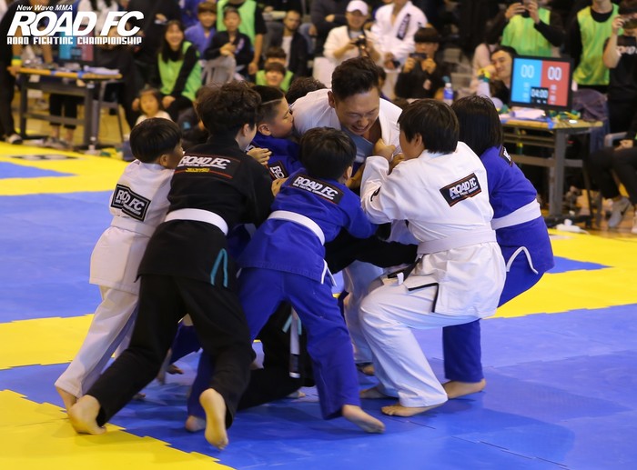 주짓수 경기도 마찬가지였다. 5초 이상 등이 닿거나 매트 밖으로 밀려나면 패하는 방식으로 진행됐는데, 10명의 아이들이 동시에 달려들져 속수무책으로 당할 수 밖에 없었다.