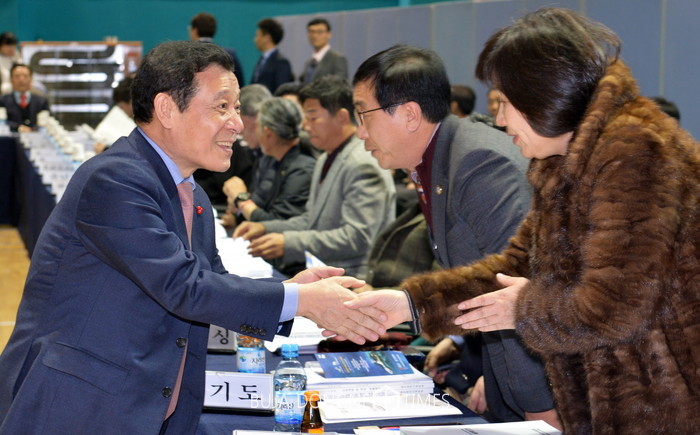 윤장현 광주광역시장이 25일 오후 광주시체육회 체육회관 2층 중회의실에서 열린 '제2차 이사회'에 참석해 각 종목 회장들과 인사를 나누었다.