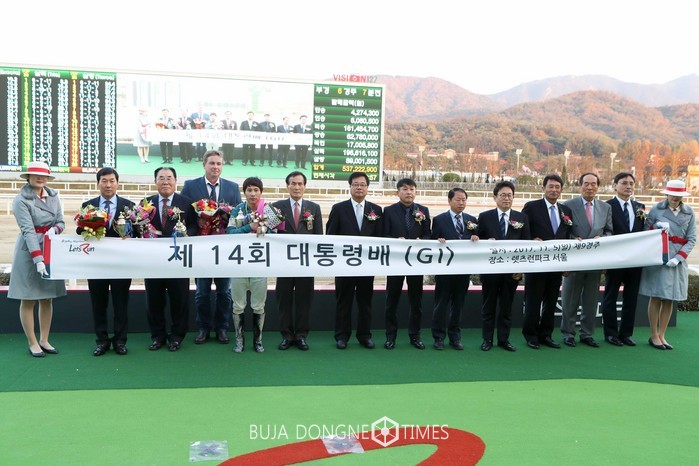 한편, 오늘 ‘대통령배(GⅠ)’에는 3만 2천여 명의 관중이 모여 뜨거운 응원을 보냈으며 총매출은 약 41억 원을 기록했다. 배당률은 단승식 2.1배, 복승식과 쌍승식은 각각 1.4배, 2.8배를 기록했다.