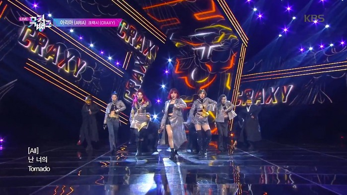 [사진설명] 크랙시, 유튜브 230만 뷰를 넘긴 '아리아' 13일 뮤직뱅크 생방송 캡쳐사진.