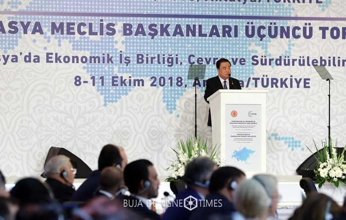 [부자동네타임즈 조영재 기자]문희상 국회의장은 현지시각 10월 9일(화) 「유라시아 경제협력, 환경 및 지속가능한 발전」 주제로 열리는 제3차 유라시아 국회의장 회의에 참석해 공동개최국으로서 개회사 및 기조연설을 했다.
