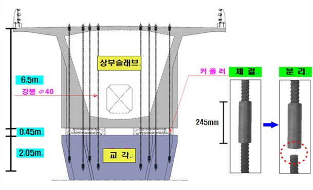 * 강봉 : 슬래브 콘크리트 타설 시 불균형 하중에 견딜 수 있도록 교각과 슬래브를 고정하는 철물