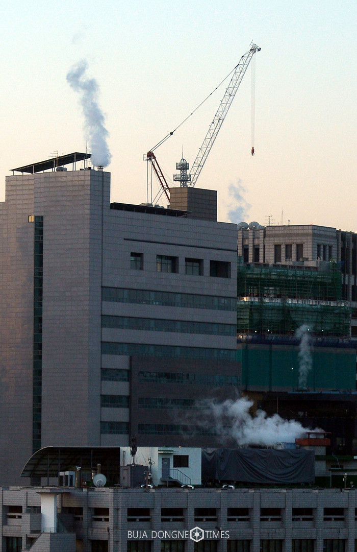 서울의 아침 최저 기온이 영하 8도를 기록하며 추위가 이어지고 있는 11일 오전 서울 중구 도심속 빌딩에서 난방으로 인한 수증기가 뿜어 나오고 있다. 2017.01.11