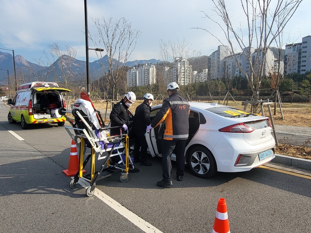 훈련은 ▲빙판길 차량 사고 수습 ▲2차 피해 예방을 위한 도로 통제 ▲구조 차량 및 제설 차량 유도 ▲소방서 구조·구급 ▲제설 장비 투입 등으로 이루어졌다.
