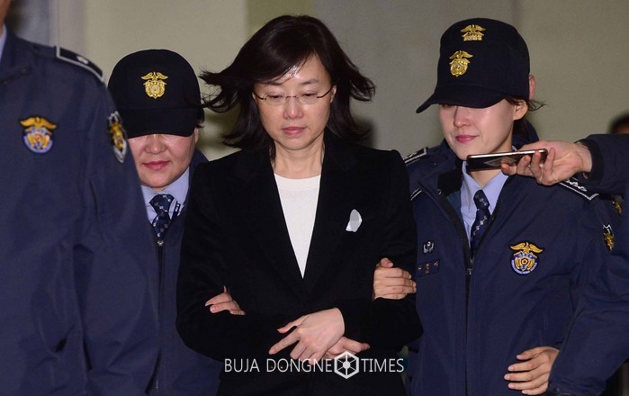 '문화계 블랙리스트' 작성에 관여한 혐의로 구속된 조윤선 전 문화체육관광부 장관이 24일 서울 강남구 대치동 특검 사무실을 나서고 있다. 2017.01.25