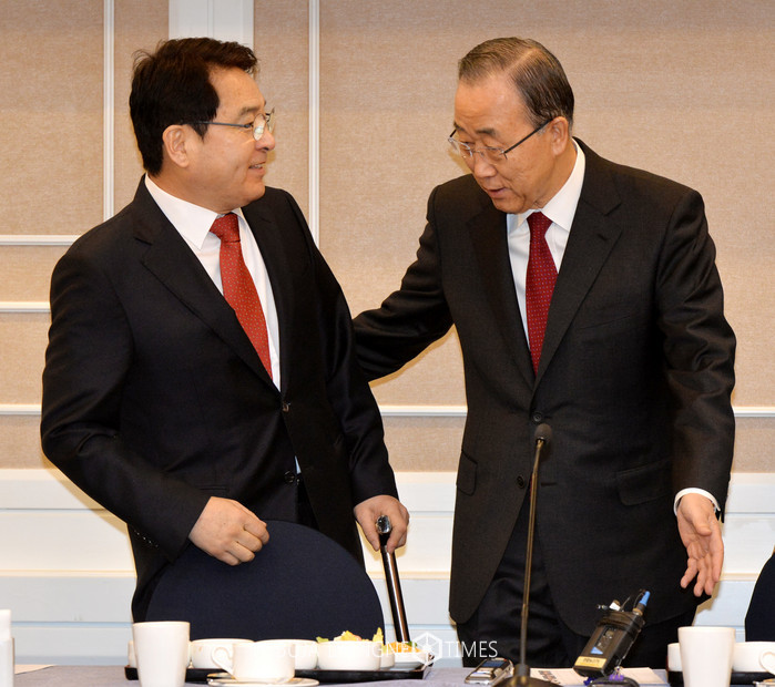 반기문 전 유엔 사무총장이 25일 오전 서울 여의도 국회에서 심재철 국회 부의장 초청으로 '왜 정치교체인가'를 주제로 한 간담회에 참석, 심의장에게 자리를 권하고 있다. 2017.01.25.
