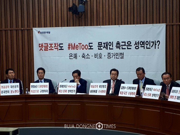 남북 정상회담 뒤꽁무니에서 드루킹과 미투를 진실은폐하려고 하는 술책이 다양하게 포착되고 있다. 민주당이 마치 물 만난 고기처럼 정상회담 국면으로 정국을 호도하려고 하지만 그렇다고 해서 댓글조작 여론조작과 강성권 사상구청장 후보 성폭행 의혹사건 같은 이 정권의 치부가 없었던 것으로 가려지지 않는다. 옥류관 평양냉면으로 잠시나마 국민의 시선을 다른 곳으로 돌려놓을 수 있을지 몰라도, 이 숱한 의혹들을 구렁이 담 넘어가듯 어물쩍 넘어 갈 수 없다. 남북정상회담으로 국민의 시선을 다른 곳으로 돌려놓고 이 사건들을 이대로 무마하려 한다면 그것이야 말로 여론조작이 될 것이다. 드루킹 게이트나 강성권 성폭행 의혹사건 뿐만 아니라 이제는 은수미 성남시장 후보 불법정치자금 수수의혹까지 제기된 마당이다. 민주당은 지금이라도 특검을 당장 받아들이고 강성권 사건과 은수미 사건에 대해서도 진실을 고백해야 할 것이다. 언제까지 남북정상회담 뒤꽁무니에 숨어서 정국을 회피하고 진실을 은폐 할 수 있을 것이라 생각하는지 현실을 직시하기 바란다.