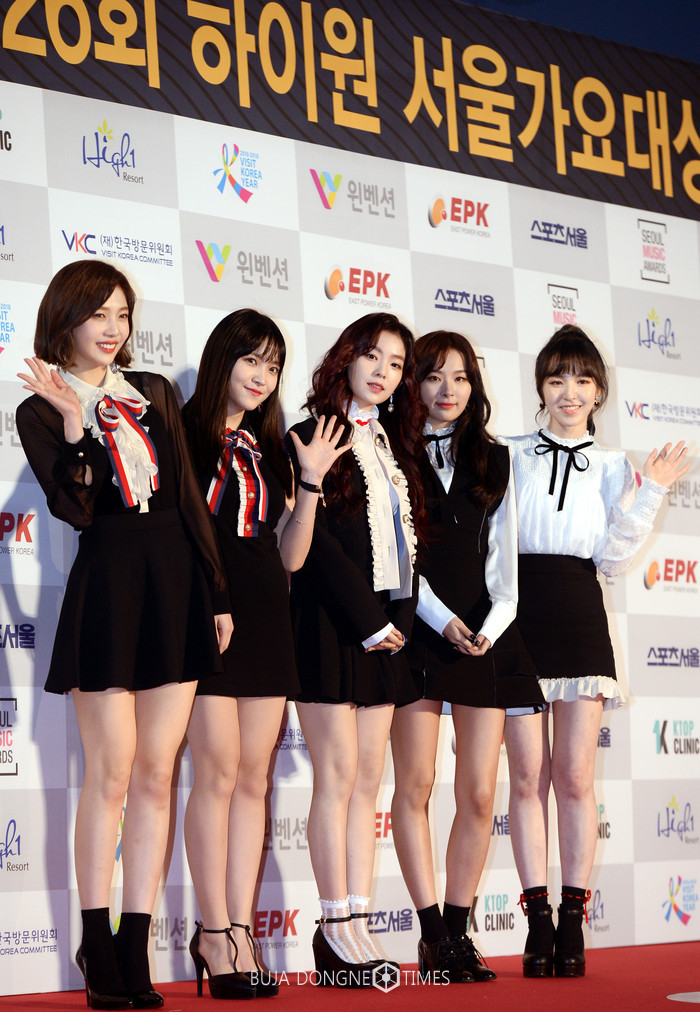 19일 오후 서울 송파구 잠실 실내체육관에서 한국방문의해 기념으로 열린 제26회 '하이원 서울가요대상시상식' 레드카펫 행사에서 걸그룹 레드벨벳이 포즈를 취하고 있다. 2017.01.19.