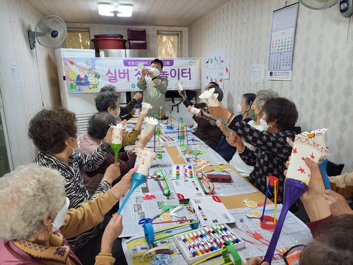 [사진설명] 실버 전래놀이터 참여 어르신들이 만들기 체험을 진행하고 있다.