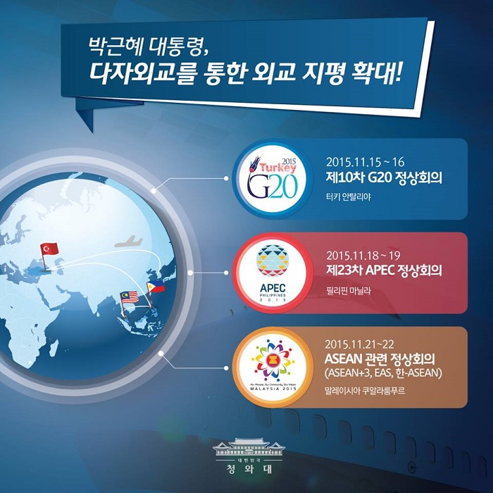 이에 앞서 박 대통령은 14일 한국을 출발해 15일과 16일 터키 안탈리아 G20 정상회의에서 다자외교를 펼쳤다.