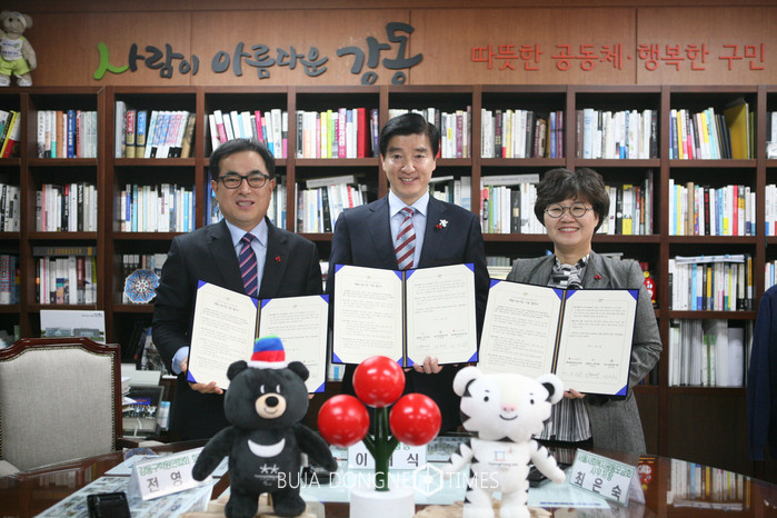 [부자동네타임즈 이병도 기자]이해식 강동구청장은 지난 7일(목) 오전 11시 구청장집무실에서 강동구 학원연합회, 서울사회복지공동모금회와 함께 ‘저소득가정 학생의 배움나눔사업 지원’을 위한 업무협약을 체결했다. ‘배움나눔사업’이란 학업보충을 위해 학원을 다니고 싶지만 교육비 부담으로 수강하지 못하는 저소득 가정 학생이 무상으로 원하는 학과목을 배울 수 있도록 관련기관이 합심해 무상 지원하는 사업이다.