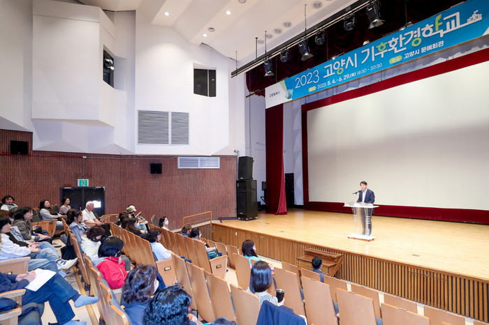 [부자동네타임즈 김인수기자] 지난 4일 고양시 문예회관에서 ‘2023 고양시 기후환경학교’가 200명이 넘는 교육생이 참여한 가운데 개강했다.