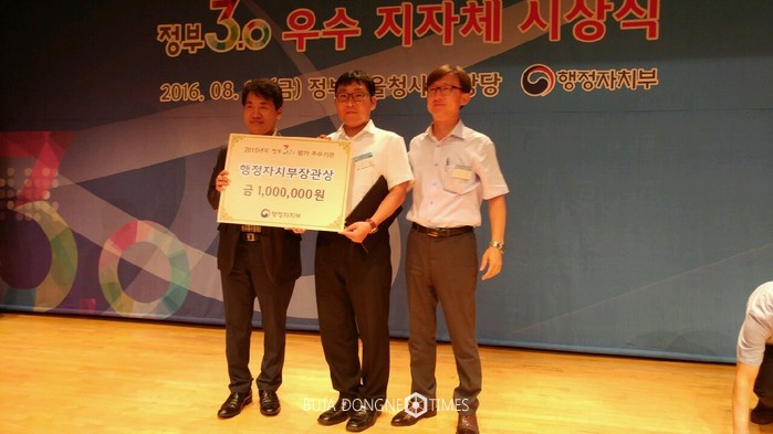 [논산=부자동네타임즈 이현석 기자] 논산시가 지난 2월 행정자치부 주관 ‘2015년 지자체 정부 3.0 추진실적’평가 우수기관으로 선정, 지난 12일 서울정부청사 별관에서 행정자치부 장관상을 수상하는 영예를 안았다.