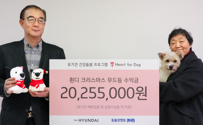 현대백화점은 동물보호단체인 ‘동물권행동 카라’에 구조된 유기견 예방 접종지원 기금 2,025만5,000원을 전달했다고 21일 밝혔다. 이 기금은 카라에서 현재 키우고 있는 유기견 200마리의 연간 필수 예방 접종(종합백신·장염·감기)비용을 충당할 수 있는 규모다. 현대백화점은 앞서 이 단체와 함께 유기견 건강돌봄 프로그램 ‘하트 포 도그(Heart for dog)’를 위한 업무협약(MOU)을 체결한 바 있다.