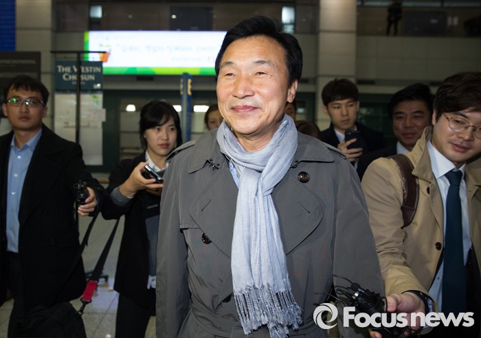 4일 오전 손학규 전 새정치민주연합 상임고문이 해외 강연일정을 마치고 인천 중구 공항로 인천국제공항을 통해 귀국하고 있다.