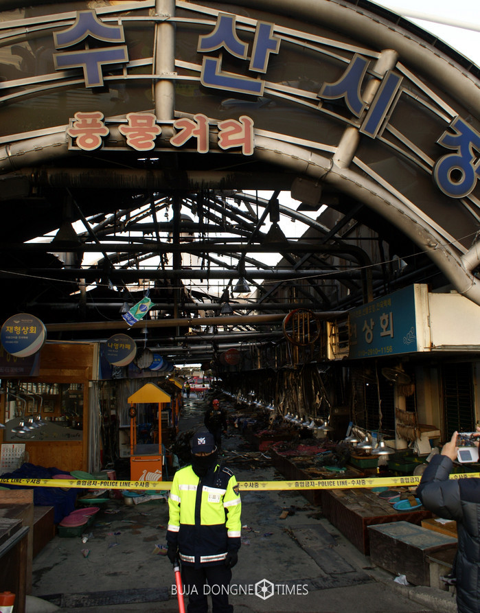 15일 오전 2시29분께 전남 여수시 교동 여수수산시장에서 불이 나 상가 116개가 전소되고 소방서 추산 5억2000만원의 피해를 낸 뒤 진화됐다. 2017.01.15