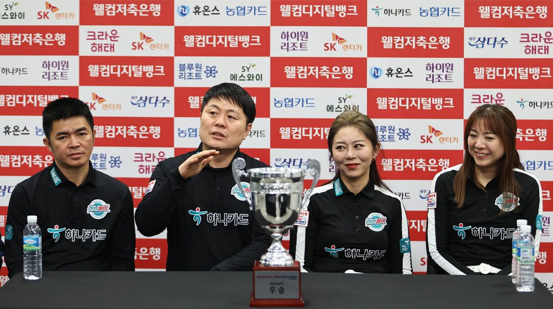 최종일 첫 경기서 하이원리조트를 맞은 하나카드는 승점3을 획득하면 자력 우승이 가능한 상황이었으나 풀세트 경기를 치르면서 2점을 확보하는 데 그쳤다. 세트스코어 3:2로 리드하던 6세트에 나선 김가영이 이미래에 5:9(7이닝)로 돌아서면서 풀세트에 돌입했고, ‘팀 리더’ 김병호가 임성균에 11:7(9이닝)로 승리해 승점16로 라운드를 마쳤다.