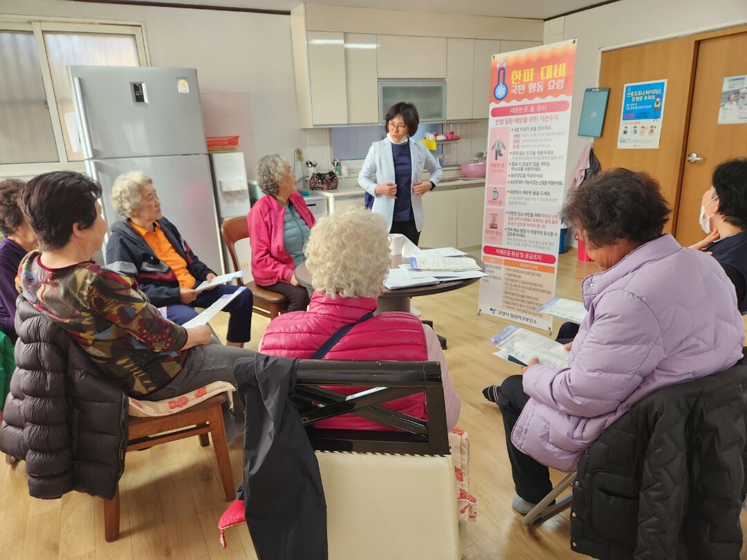 이어서 ▲가벼운 실내 운동 ▲적절한 식사·수분 섭취 ▲실내 적정 온도 및 습도 유지 ▲외출 시 방한용품 사용하기 등 겨울철 건강 수칙을 안내하고 발열 양말, 텀블러 등의 방한 용품을 전달했다.