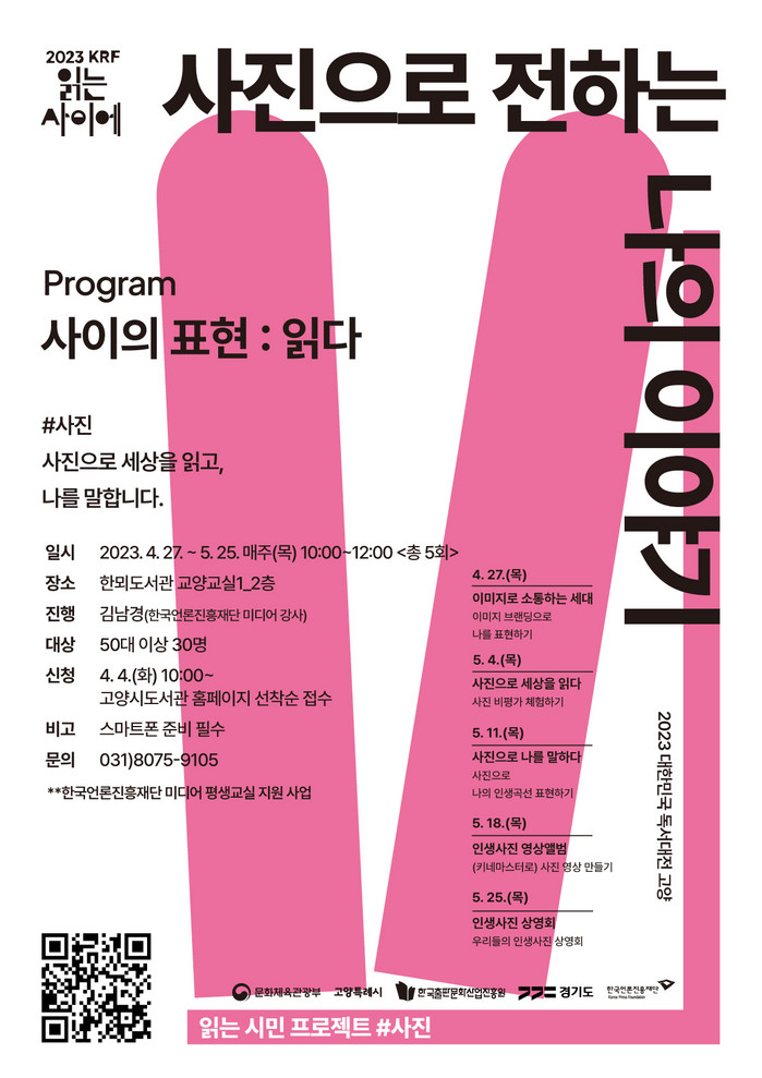 프로그램 신청은 오는 4월 4일 (화) 오전 10시부터 고양시 도서관센터 홈페이지에서 가능하며, 기타 궁금한 사항은 독서문화프로그램 담당자에게 문의하면 된다.