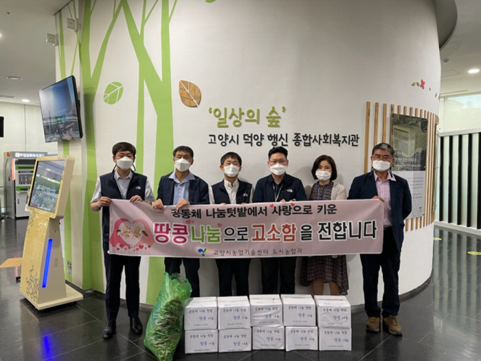 [부자동네타임즈 김인수기자] 고양시 농업기술센터(소장 이도연)는 지난 29일 덕양 행신 종합사회복지관과 고양시 장애인 주간보호센터를 방문하여 공동체 나눔 텃밭에서 재배하고 수확한 땅콩 200kg과 고구마줄기 50kg을 전달했다.