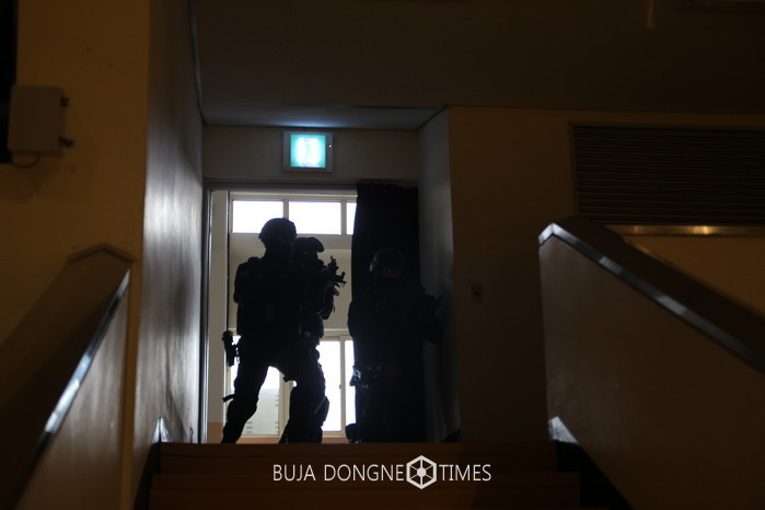 이에 따라 이번 훈련은 인질 테러 상황을 부여해 통로개척 방안 연구 및 레펠 침투훈련을 실시했으며, 폭발물 은닉에 따른 처리절차 및 탐지견을 활용한 폭발물 수색 훈련을 실시했다.