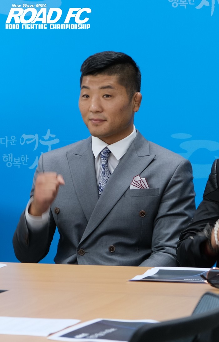[부자동네타임즈 김인수기자] 권아솔은 지난 10일 여수 시청과 순천 달콤커피 종로그룹점에서 기자간담회를 열고 굽네몰 ROAD FC 056에 대한 출전 소감 및 대회 준비 상황을 전했다. 권아솔과 샤밀 자브로프의 경기는 11월 9일 여수 진남체육관에서 진행된다.