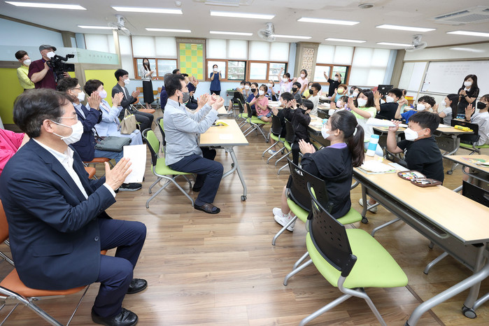 이동환 당선인은 지난 23일 토당초교 4학년 교실을 방문하고 “학생들이 인수위에 직접 쓴 손 편지로 제안한 ‘학교 주변 환경 개선 프로젝트’를 보고 깜짝 놀랐다”면서 “담장을 치우고 작은 공원을 만들어 달라 등 어른들의 눈에 잘 보이지 않은 부분들을 제안해 고맙다”고 격려했다.