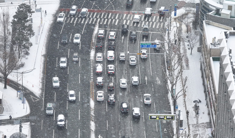 서울의 경우 강북구에 전날 오후 1시부터 이날 오전 6시 사이 5.4㎝ 눈이 쏟아져 적설됐다.