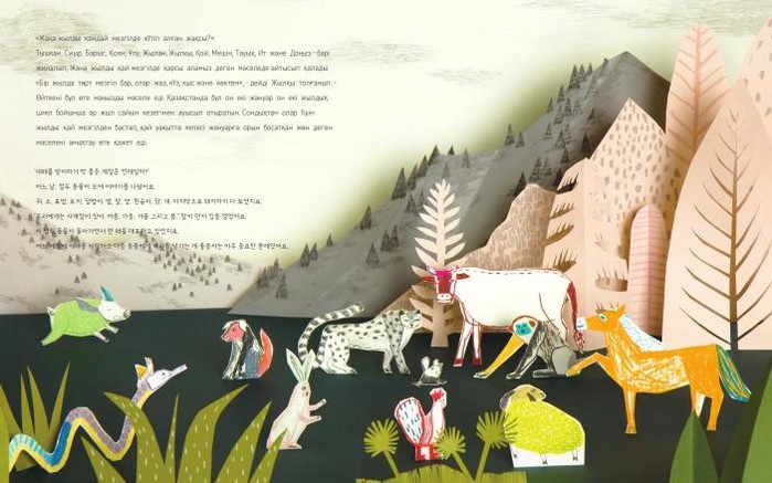 책에서 각 해를 대표하는 12동물들은 새해를 언제 시작하면 좋을지 이야기를 나누고, 모두가 좋아하는 봄에 새해를 맞이하기로 결정하는 등, 초원의 나라이자 다민족 화합국가인 카자흐스탄의 모습을 글과 그림에서 재미있게 표현하고 있다.
