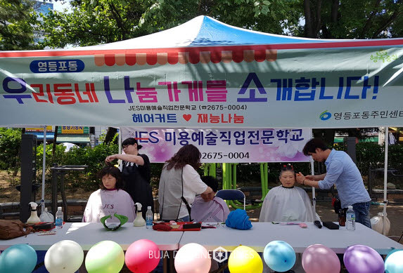 [부자동네타임즈 이병도 기자]지난 6월 김◯◯ 어르신은 영등포동 마을장터를 방문해 무료로 머리손질을 받고 “정성스럽게 머리도 손질해주고 말벗도 되어 주니 좋다.” 고 고마운 마음을 전했다. 영등포동 나눔가게인 ‘JES미용예술직업전문학교’ 의 미용사 3명은 이날 독거 어르신 및 저소득계층을 위해 재능기부로 무료 헤어 커트를 진행했다.