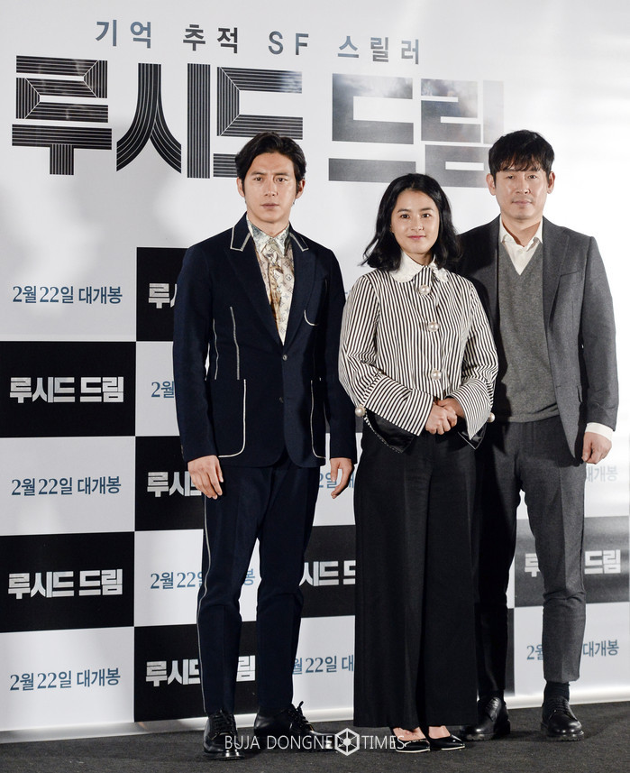 배우 고수(왼쪽부터), 강혜정, 설경구가 15일 오후 서울 성동구 CGV 왕십리에서 열린 영화 '루시드 드림' 언론 시사회에 참석해 포즈를 취하고 있다. 2017.02.15.