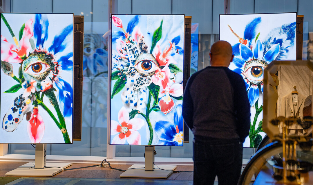 [부자동네타임즈 = 이의수 기자] LG전자는 쁘렝땅 백화점 개점 1주년을 맞아 현지 시간 4월 27일까지 진행되는 기념전에서 파트너로 초청받아 특별 전시를 진행한다고 25일 밝혔다. 사진은 미국 뉴욕 럭셔리 백화점 '쁘렝땅'에서 올레드 TV로 디지털 아트를 선보이는 모습. 2026.3.25 [LG전자 제공]