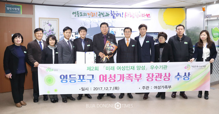 [부자동네타임즈 이병도 기자]영등포구(구청장 조길형)가 ‘제2회 미래 여성인재 양성’ 우수기관으로 선정되면서 여성가족부 장관상을 수상했다고 밝혔다.