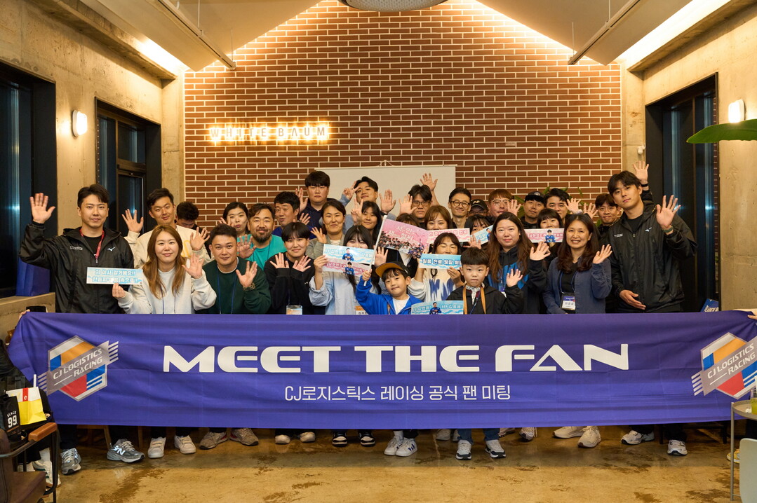 CJ로지스틱스 레이싱은 지난 3일 공식 팬클럽 ‘스피드 원(SPEED ONE)’ 멤버 30여명을 초청한 가운데 창단 두번째 팬미팅 ‘MEET THE FAN in 용인’ 행사를 진행했다고 밝혔다. 2023 CJ대한통운 슈퍼레이스 챔피언십 최종전을 치르기 전 용인 에버랜드 스피드웨이 인근 카페에서 열린 팬미팅에는 CJ로지스틱스 레이싱 오한솔, 박준서 드라이버를 비롯, 이정웅 감독과 미케닉 등 팀 전원이 참석해 한 시즌 동안 응원해준 팬들에게 감사 인사를 전했다.