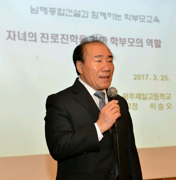 이날 학부모교육엔 시교육청 미래인재교육과장을 지낸 광주제일고등학교 이승오 교장이 강사로 초빙됐다. 이 교장은 '자녀의 진로진학금 위한 학부모의 역할'을 강연에 나섰다.