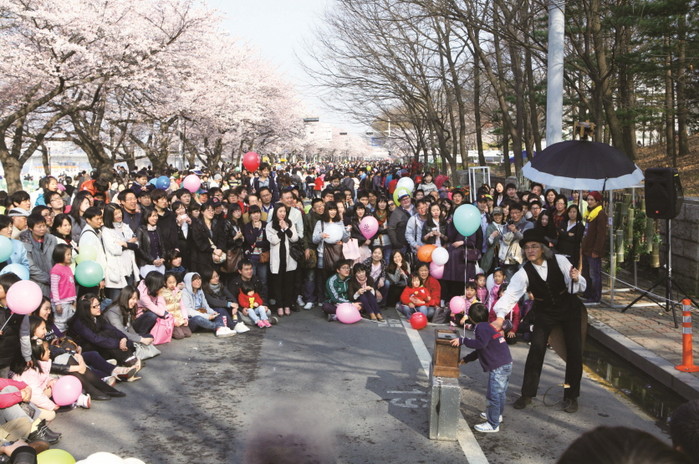 | △ 여의도 벚꽃축제 현장(2014)에서 공연하고 있는 모습 |