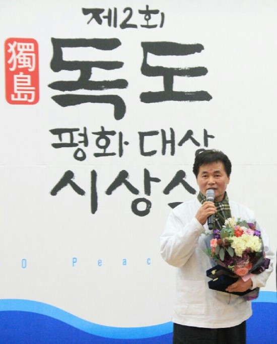 | △ 지난해 '제2회 독도평화대상'에서 서도상(대한봉)을 수상한 '푸른울릉독도가꾸기회' 이사로 활동중인 동경산씨가 수상소감을 하고있다. |