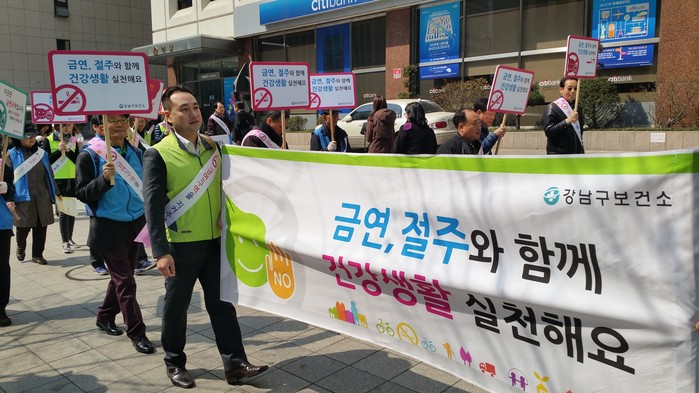 | △ 강남구가 금연·절주 가두캠페인을 벌이고 있다. |