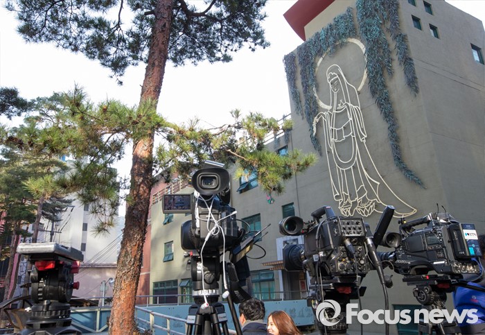 (서울=포커스뉴스) 조계사 신도회가 한상균 민주노총 위원장의 퇴거를 요구한 기한이 하루 지난 7일 오전 서울 종로구 조계사에 취재진의 카메들이 놓여 있다. 이달 1일 한 위원장은 2차 민중총궐기가 끝나는 6일 까지 퇴거 여부를 알리겠다고 전했으나 여지껏 뚜렷한 입장표명을 미룬 채 조계사에 칩거 중이다.