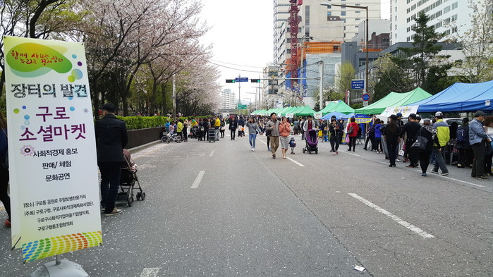 | △ 구로동 공원로 보행전용거리에서 열린 소셜마켓 ‘장터의 발견’ 행사 |