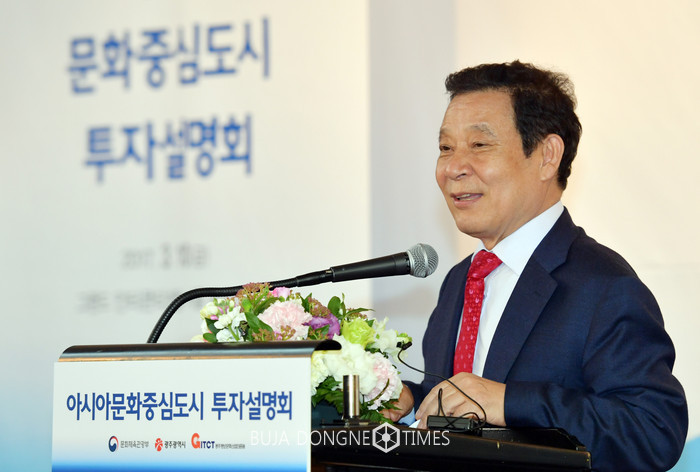 윤장현 광주시장은 10일 오후 서울 그랜드인터넨탈 호텔에서 광주광역시와 문화체육관광부가 공동으로 마련한 '아시아문화중심도시 서울 투자설명회'에 참석해 인사말을 했다.