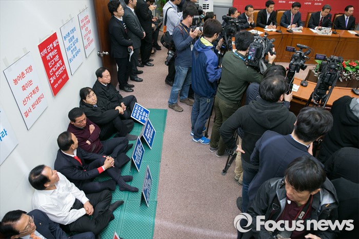 이날 회의가 열린 국회 새누리당 대표최고위원실에는 황영철 의원을 비롯한 농어촌 지역 의원들이 전날부터 농성 중이었다.
